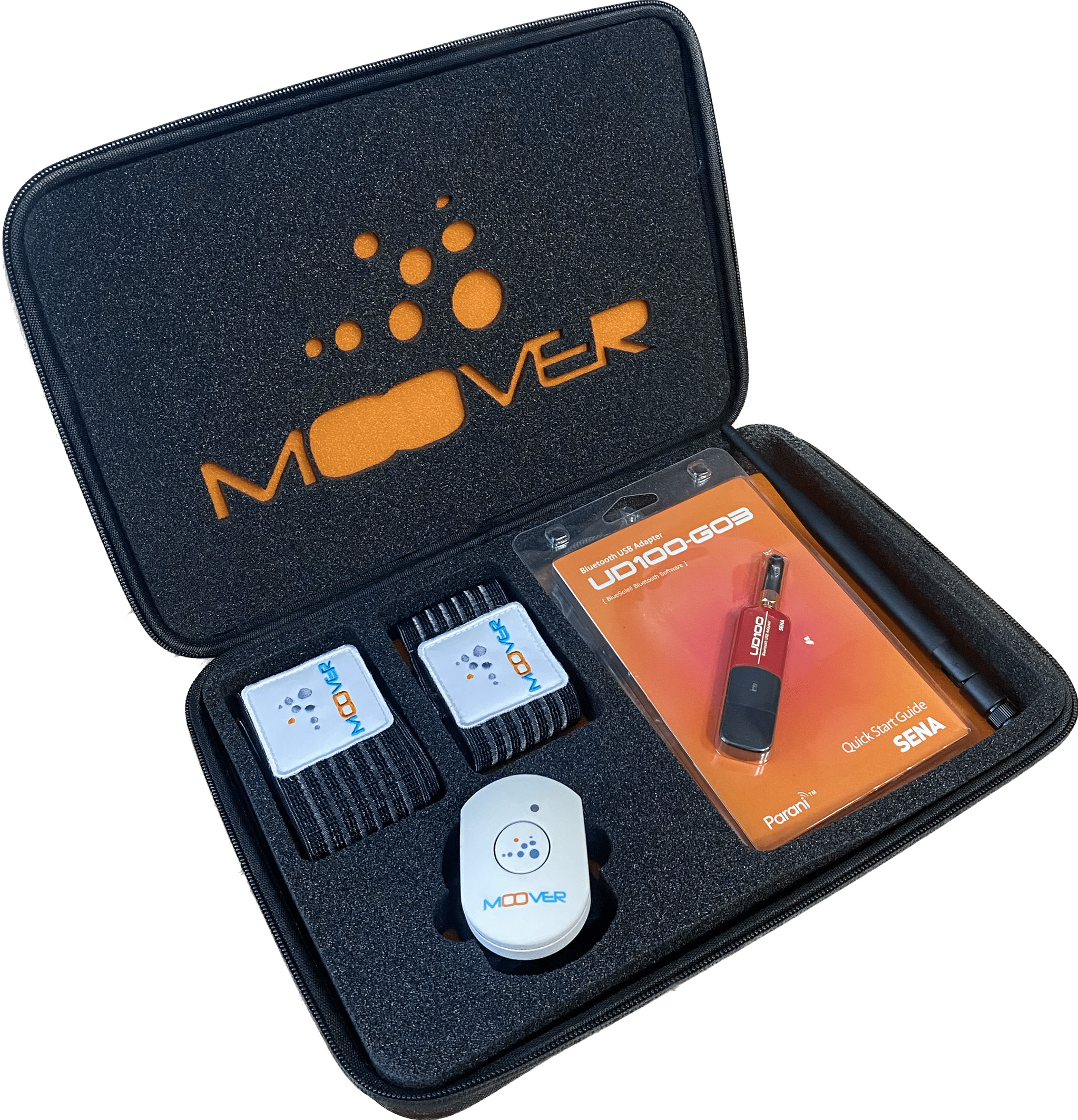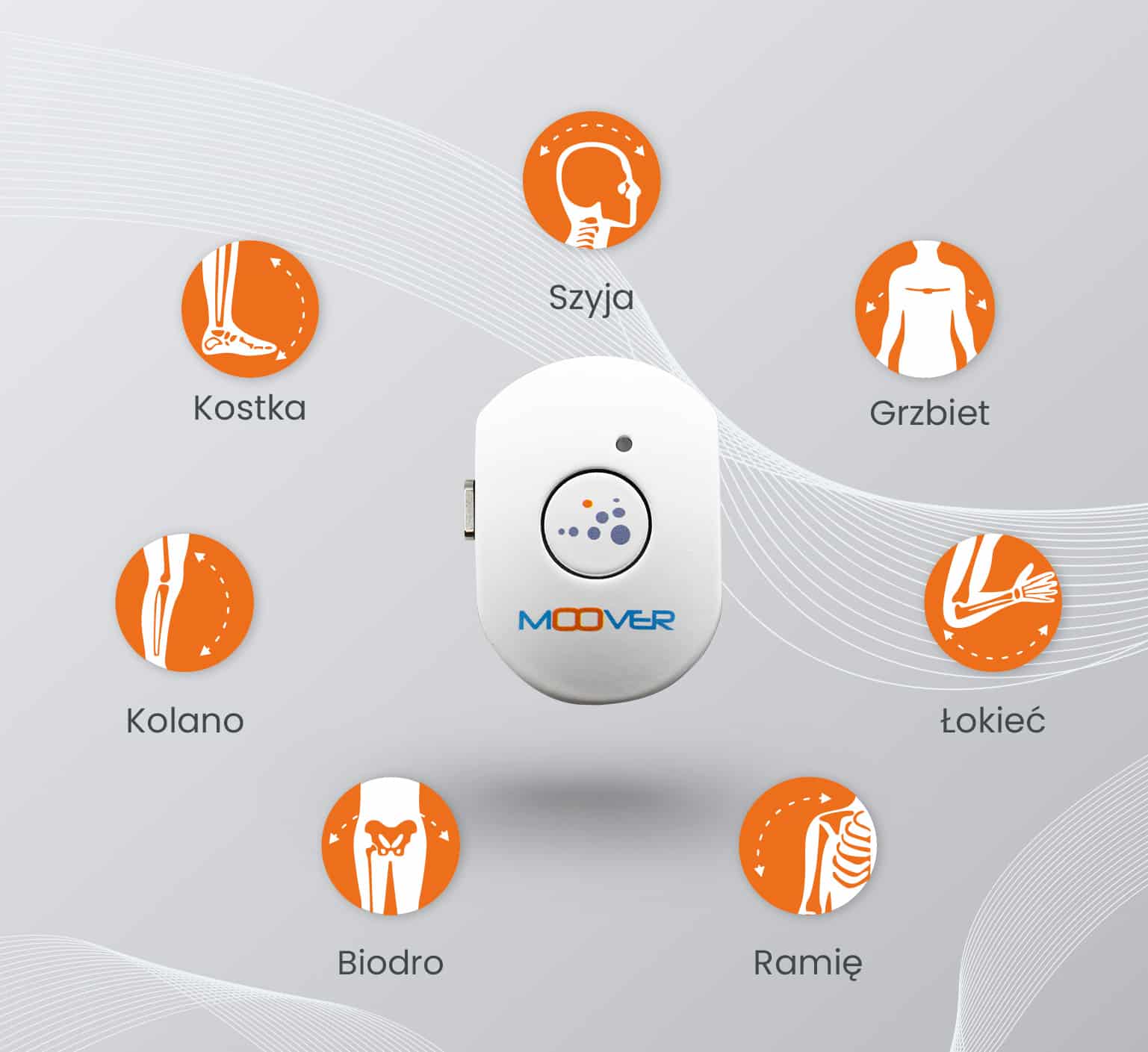 Motion Sensor MOOVER to nowoczesny bezprzewodowy czujnik ruchu, przesyłający bezprzewodowo dane online do komputera, dedykowany do analizy ruchomości poszczególnych części ciała (funkcja inklinometro-skoliometro-goniometru). MOOVER pozwala na trójpłaszczyznową analizę ruchomości wszystkich głównych stawów ciała człowieka. Czujnik ten przeznaczony do oceny parametrów czasowo-przestrzennych. Jest to jeden z najmniejszych czujników bezprzewodowych na rynku (rozmiar 3,7cm x 3,2cm x 1,3cm).