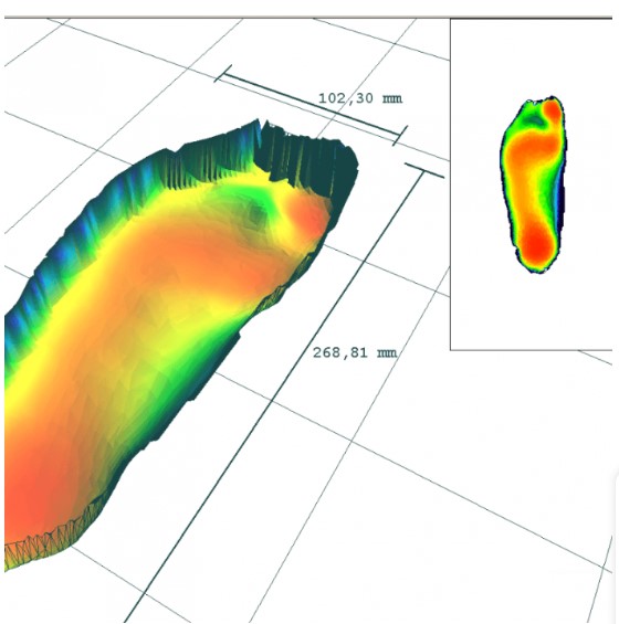 Urządzenie pozwala zeskanować stopę w 3D oraz zeskanować „odgniot” stopy wykonany w piance poliuretanowej.