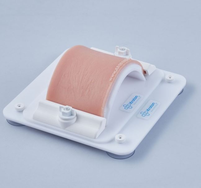 Model skóry dwuwarstwowej składa się z dwóch warstw o różnych kolorach. Różne kolory ułatwiają naukę szycia śródskórnego. Preparat umożliwia wielokrotne zakładanie szwów. Górna warstwa imitująca ludzką skórę jest wykonana z silikonu, dolna w innym kolorze jest wykonana z gąbki. Preparat jest stabilizowany za pomocą uchwytu.