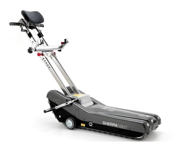Schodołaz gąsienicowy włoskiej firmy KSP Italia Sherpa N 907 to urządzenie, które przemieszcza się znacznie skuteczniej dzięki 2 dodatkowym, zmechanizowanym kółkom działającym podczas manewrowania. Nowe, składane dolne wsporniki dla wózków znacznie redukują całkowite wymiary podczas transportu i przechowywania, a kontrolery zwalniania i bezpieczeństwa zostały umieszczone na uchwycie drążka sterowniczego, dzięki czemu obsługa jest łatwiejsza i płynniejsza.