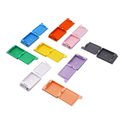 Kasetka histopatologiczna BIOPSY ze zintegrowanym wieczkiem dedykowana do przeprowadzania małych materiałów tkankowych z otworkami o wymiarach 1×1 mm zapewniającymi doskonałą penetrację oraz przepływ odczynnika podczas procesu przeprowadzania materiału tkankowego