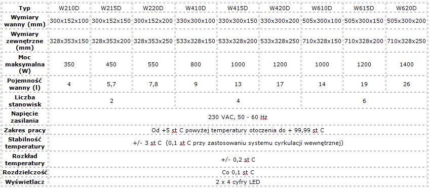 Dane techniczne dostępnych modeli znajdują się na zdjęciu poglądowym w Galerii.