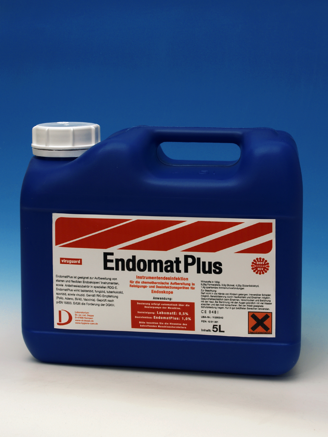 Preparat dezynfekcyjny do chemo-termicznego opracowania narzędzi w myjniach-dezynfektorach. Klasyczna i sprawdzona formuła na bazie aldehydu glutarowego (bez formaldehydu i glioksalu). Działa szybko i skutecznie w niskich roztworach roboczych (1% - 5 min). Skuteczny przeciwko wszystkim wirusom osłonkowym Testowany przez niezależnych ekspertów zgodnie z normą EN 15883 - 4 dla procesu mycia i normą EN 14476 w zakresie dezynfekcji instrumentów na skuteczność wirusobójczą. Doskonała kompatybilność materiałowa. Niskopieniący. ENDOMAT PLUS Viruguard i LABOMAT E są odpowiednie i powszechnie stosowane do mycia i dezynfekcji w urządzeniach dostępnych na światowym rynku (w tym myjniach Olympus, BHT Innova i innych), są dobrze tolerowane przez materiał i nie wywołują piany. ENDOMAT PLUS Viruguard i LABOMAT E stanowią wspólny system chemiczno – termicznego mycia i dezynfekcji sztywnych i elastycznych endoskopów oraz ich akcesoriów w warunkach pomiędzy 50oC - 60oC na bazie mycia enzymatycznego. ENDOMAT PLUS Viruguard i LABOMAT MA z preparatem neutralizującym LABOMAT KS stanowią wspólny system chemiczno – termicznego mycia i dezynfekcji sztywnych i elastycznych endoskopów oraz ich akcesoriów w warunkach pomiędzy 50oC - 60oC na bazie mycia alkalicznego. Pojemność: 5l.