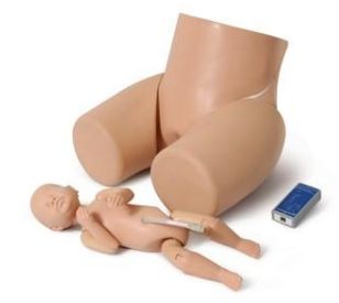 Symulator porodu PROMPT został stworzony specjalnie z myślą o szkoleniach z zakresu prowadzenia porodu fizjologicznego oraz wczesnego postępowania z noworodkiem bezpośrednio po urodzeniu.Symulacja obejmuje prowadzenie porodu siłami natury, porodu zakończonego narzędziowo oraz porodów trudnych, m.in. z dystorsją barkową dziecka. Zalety modelu: 1. trening kluczowych działań przeprowadzanych w trakcie trwania opieki położniczej 2. system Force Monitoring na bieżąco obrazujący siły działające na dziecko w czasie porodu 3. możliwość umieszczenia modelu na kozetce wraz z pacjentką pozwalająca nie tylko na trening umiejętności położniczych, ale również szkolenie z zakresu komunikacji personelu medycznego z rodzącą oraz osobami towarzyszącymi przy porodzie 4. kompleksowa symulacja porodu od momentu pierwszych skurczy po urodzenie łożyska i opiekę poporodową 5. możliwość rozszerzenia zakresu symulacji o kompleksową opiekę neonatologiczną dzięki opcjonalnemu wykorzystaniu w ćwiczeniach symulatora noworodka SimNewB lub Newborn Anne 6. budowa manekina dziecka pozwalająca na przeprowadzanie symulacji porodów z różnymi rodzajami ułożeń (twarzyczkowe, pośladkowe, miednicowe i poprzeczne.) Cechy i funkcje symulatora: 1. pierwszy symulator z systemem monitorowania siły oddziałującej na dziecko podczas porodu 2. model ciężarnej w pełni oddający anatomiczną budowę mięśni krocza oraz dna miednicy, skonstruowany dokładnie według parametrów pochodzących z tomografii komputerowej 3. możliwość odsłonięcia skóry brzucha pacjentki w celu obserwacji zachowania płodu i jego pozycji 4. model donoszonego noworodka z wyczuwalnym ciemiączkiem, linia szwu, obojczykami i łopatkami 5. wyjmowane łożysko wraz z pępowiną 6. różne możliwości symulacji: poród fizjologiczny prawidłowy, pośladkowy, kleszczowy lub próżniowy, poród dziecka z dystorsją barkową, rodzenie łożyska Wersja symulatora z systemem Force Monitoring daje użytkownikowi unikalną możliwość bieżącej obserwacji siły działającej na dziecko podczas porodu. Wbudowany w model noworodka czujnik tensometryczny oraz wygodne w obsłudze oprogramowanie obrazują ją w sposób graficzny na ekranie komputera PC (nie dołączony do zestawu) wyrażoną w Niutonach. Oprogramowanie można konfigurować dla różnych odstępów czasu z użyciem różnych znaczników dla poszczególnych zadań co daje instruktorom możliwość dopasowania scenariuszy do konkretnych celów dydaktycznych. Wyniki ćwiczeń mogą być zapisane dla celów późniejszej analizy i podsumowania.