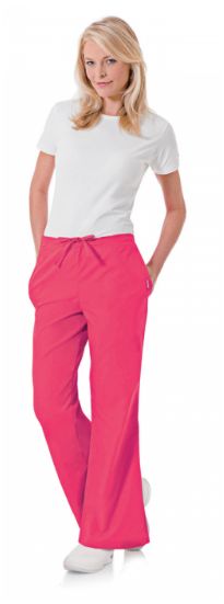 Spodnie dopasowują się naturalnie. Wyprofilowane na biodrach, luźne w udach z rozszerzanymi ku dołowi nogawkami. Spodnie średniej długości. Połączenie wiązania sznurkiem z przodu z ściągaczem z tyłu. Rozmiary: XS-XL.