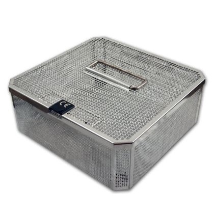 Y102 - Stalowy pojemnik perforowany do sterylizacji o wymiarach 243 x 253 x 44 mm