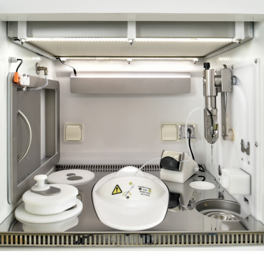 Jego szczelne, wentylowane i kontrolowane środowisko klasy A (ISO 5), a także 40 mm osłona ołowiana, zapewniają wszystkie właściwości niezbędne do obsługi wysokoenergetycznych radioizotopów powszechnie stosowanych w PET i SPECT zgodnie z dobrymi praktykami radiofarmacji.