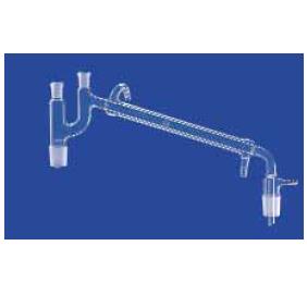Wykonane ze szkła DURAN®. Zgodne z normą DIN 12594. Z chłodnicą Liebiga ustawioną pod kątem 75° oraz nasadką Claisena i przyłączem do wody i próżni (oliwki). Nasadka z dwoma żeńskimi szlifami NS 14/23 do termometrów o gł. zanurzenia 55 mm.