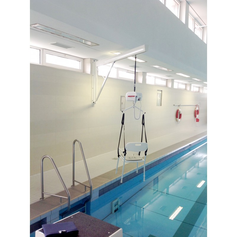 Montaż podnośników basenowych ułatwia osobom niepełnosprawnym zarówno dostęp jak i korzystanie z basenów. Wytrzymały wyciąg naścienny oraz niezawodny podnośnik LeviCare UNO gwarantują udźwig do 160 kg. Użytkowanie podnośnika basenowego sprowadza się do zapięcia osoby podnoszonej w specjalne siedzisko kąpielowe oraz podwieszenie go za pomocą wygodnych zaczepów na podnośnik. Za pomocą pilota można dowolnie regulować wysokość podniesienia, a osoba opuszczona do basenu może poruszać się swobodnie w zasięgu działania podnośnika. Obsługa podnośnika jest bardzo prosta. Jest on również wyposażony w wyłącznik awaryjny oraz systemy informujące o niskim stanie baterii.