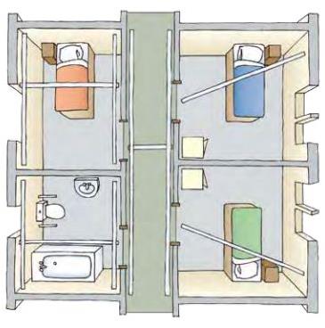 - Szyny proste - Instalacja, która pozwala na transfer użytkownika podnośnika po linii prostej wzdłuż zainstalowanej szyny sufitowej.