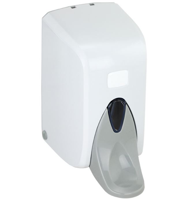 - łokciowy dozownik mydła w płynie, 0,5l, biały, ze zbiornikiem