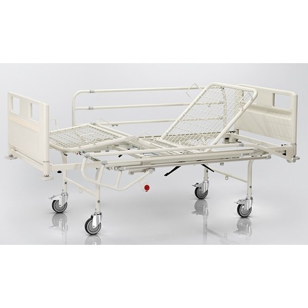 - Regulacja kąta nachylenia segmentu pleców w zakresie 0 – 75o. Regulacja wspomagana sprężyną gazową, dźwignie zwalniające blokadę zlokalizowane po obu stronach łóżka.