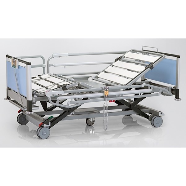 - Łóżko w pełni elektryczne z regulacją wysokości, segmentu pleców i uda, funkcji TR i antyTR za pomocą pilota przewodowego, panelu centralnego.