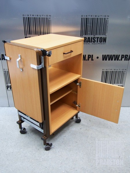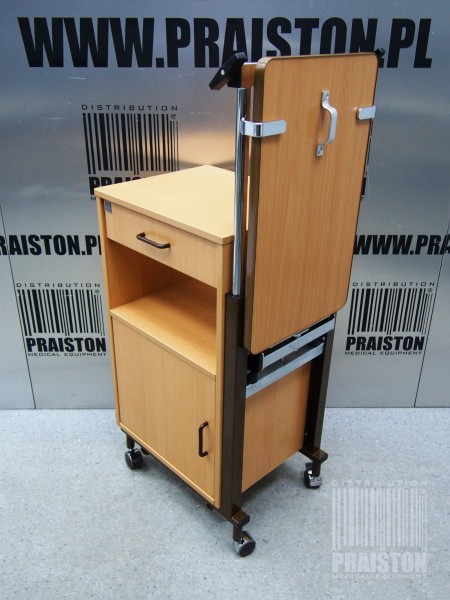 - Najważniejszym elementem prezentowanego modelu szafki do łóżka rehabilitacyjnego jest wysuwany, regulowany w poziomie blat roboczy. W szafce tej można nie tylko określić zadaną wysokość blatu szafki ale również jego kąt nachylenia. Jest to opcja bardzo chwalona przez podopiecznych i pacjentów placówek medycznych i rehabilitacyjnych,