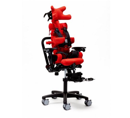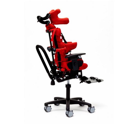 - Elastyczna konfiguracja siedziska w zależności od potrzeb - wersja bazowa z bogatą wersją wyposażenia (platforma stóp, kamizelka, zagłówek, podpaszki).