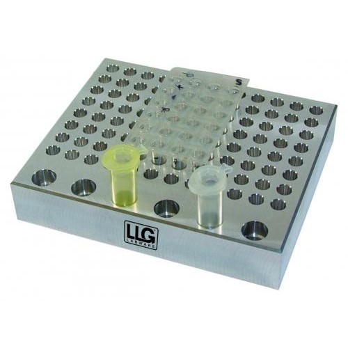 w obrębie bloku. Idealne do wszystkich aplikacji wrażliwych na zmiany temperatury. Aluminiowe bloki o stożkowym kształcie otworów z zamkniętym dnem, zapewniające precyzyjne utrzymywanie temperatury probówek reakcyjnych i PCR. Precyzyjne dopasowanie kształtu stożkowych otworów do probówek zapewnia lepszy transfer ciepła i stabilność temperatury w porównaniu z blokami o otworach cylindrycznych. Wykonane ze specjalnego stopu aluminium o wysokiej przewodności cieplnej, zapewniają identyczną temperaturę we wszystkich otworach. Kompaktowe rozwiązanie, wymagające minimalnej przestrzeni. Odpowiednie do płytek 96-dołkowych oraz pasków po 8 lub po 12 probówek. Idealne do pracy z pipetami 8- i 12-kanałowymi. Bloki do różnych probówek lub kombinacji zgodnie z poniższym opisem.