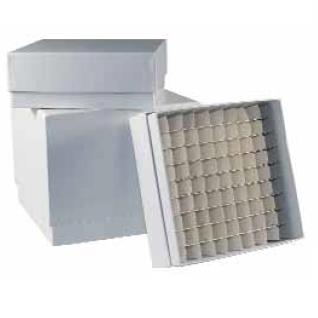 Z pokrywą. Kriopojemniki do kriogenicznego przechowywania próbek w zamrażarkach. Wykonane z kartonu pokrytego