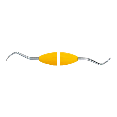 Kireta McCall 13S-14S MiniUniwersalna do wszystkich powierzchni. Mocny instrument do skalingu nad i poddziąsłowego, szczególnie do głębokich kieszonek. Narzędzie ma dłuższe wyprowadzenie i krótszą część pracującą w porównaniu do kirety standardowej.