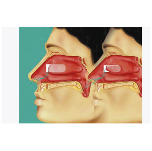 Jej szczególny kształt umożliwia wytamponowanie zatoki sitowej w celu uniknięcia zrostów. Z nitką do wyciągania tamponady.