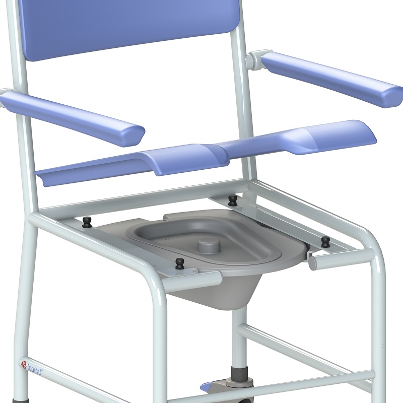 Krzesło prysznicowe Timo firmy Lopital to pomoc w czynnościach higienicznych umożliwiająca odpowiedzialną pielęgnację i mycie pacjentów i pensjonariuszy. Komfort Timo jest optymalny zarówno dla opiekuna, jak i pacjenta.