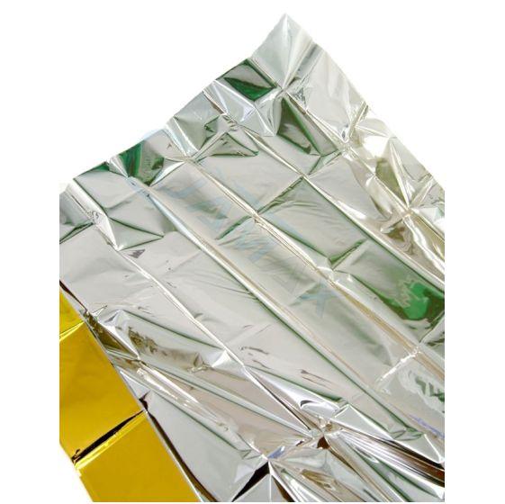 KOC RATUNKOWY chroni przed groźną dla życia utratą ciepła, przed niekorzystnym wpływem warunków atmosferycznych (deszczem, wilgocią). Sygnalizuje, ze osoba nim przykryta wymaga pomocy.