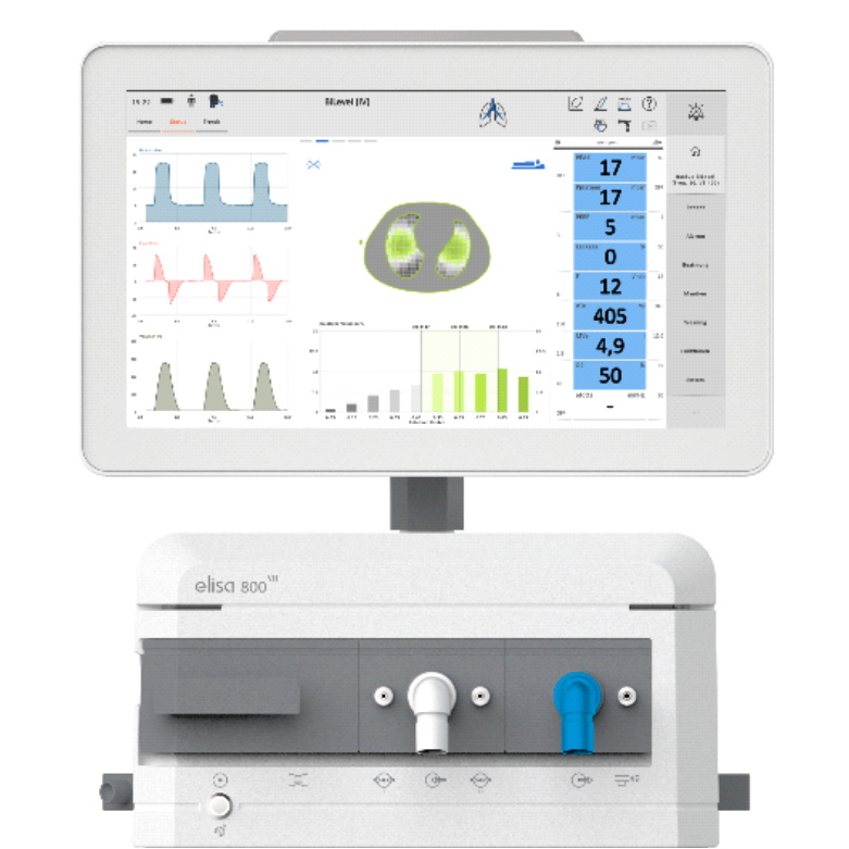 elisa 800 łączy różnorodne opcje nowoczesnego respiratora intensywnej terapii z najwyższego segmentu rynku ze zintegrowanym modułem tomografii. Jako pierwszy na świecie system wentylacji ze zintegrowaną tomografią impedancyjną elisa 800 VIT umożliwia obrazowanie przyłóżkowe bez promieniowania radiacyjnego oraz wizualną kontrolę wentylacji. Efekty wentylacji mogą być w sposób ciągły oceniane w czasie rzeczywistym w celu detekcji komplikacji. Najnowsza technologia tekstylnych czujników minimalizuje uszkodzenia skóry w porównaniu ze starszymi systemami oraz może być używana w pozycji leżącej. Wyświetlanie obrazowania funkcjonalnego zostało specjalnie zaprojektowane do codziennego użytku w środowisku klinicznym i jest łatwe w interpretacji.