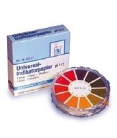Papierki wskaźnikowe pozwalające na oznaczenie wartości pH, w odniesieniu do skali barw umieszczonej na opakowaniu.