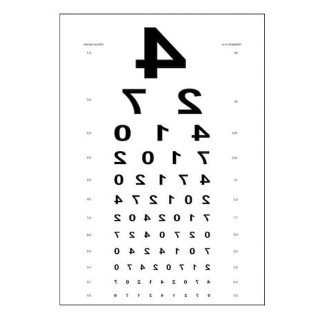 Tablica Snellena odwrócone cyfry PCV to przyrząd do wykonywania badania optometrycznego. W trakcie badania pacjent staje w odległości 6 metrów od tablicy. Tablica składa się z dwunastu rzędów odwróconych cyfr, a najmniejszy rząd, który pacjent jest w stanie odczytać z tablicy określa ostrość wzroku pacjenta w danym oku. Tablica wykonana z PCV. Gwarancja producenta wynosi 12 miesięcy.