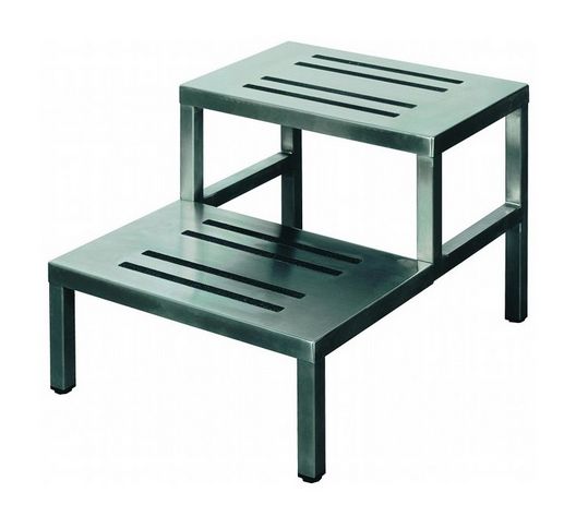 Podest zabiegowy wykonany jest w całości ze stali nierdzewnej, posiada 2 stopnie, pokryte taśmą antypoślizgową (wykonaną z materiału trudno-ścieralnego, odpornego na wodę, oleje, promienie UV). Podnóżek operacyjny jest łatwy do utrzymania w czystości, ergonomiczny, ułatwia pracę podczas prowadzenia zabiegów.