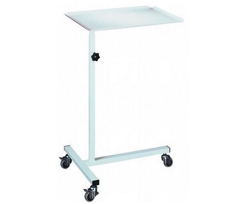 Stolik wykonany z blachy gr. 1,5 mm i profili metalowych. Kółka przy nogach stolika umożliwiają przemieszczanie stolika i ustawianie go w dowolnym miejscu. Wszystkie kółka skrętne, dwa z nich – z blokadą, zabezpieczającą przed przemieszczaniem się stolika.
