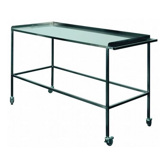 Stolik zabiegowy STLK ze stali nierdzewnej kwasoodpornej, przeznaczony także do przewożenia materiałów sterylnych, koszy, narzędzi, leków i innych przyrządów na blokach operacyjnych, na oddziałach, w gabinetach zabiegowych, laboratoriach, w sterylizatorni, itd.