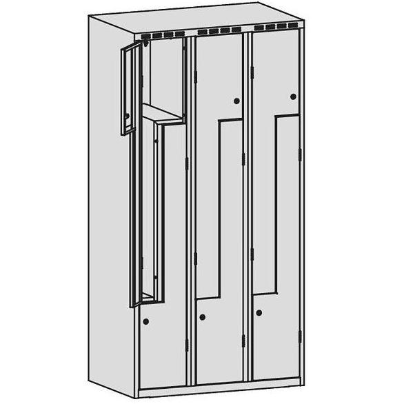Szafa ubraniowa SUL 43 to sześciodrzwiowa szafa ubraniowa, która pozwalaja na estetyczne i funkcjonalne urządzenie pomieszczeń socjalnych dla pracowników. Szeroki asortyment gwarantuje zrealizowanie najbardziej zróżnicowanych potrzeb. W celu wykorzystania małych powierzchni na szatnie, opracowaliśmy szafy z przedziałami w kształcie litery L. Otwory wentylacyjne umieszczono na wieńcu górnym i dolnym. Wykonana jest z blachy czarnej o grubości 0,6mm- 2,0 mm, malowana farbami proszkowymi (epoksydowo-poliestrowymi) w w jednym z 13 dostępnych kolorów.Całość zamykana jednym centralnym zamkiem.