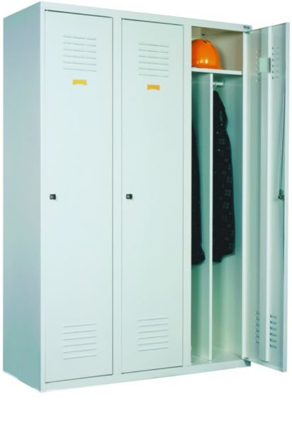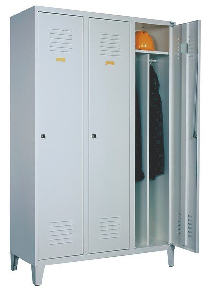 Szafa ubraniowa SUM 430/SUM 431 to trzydrzwiowe szafy ubraniowe, które pozwalają na estetyczne i funkcjonalne urządzenie pomieszczeń socjalnych dla pracowników. Szeroki asortyment gwarantuje zrealizowanie najbardziej zróżnicowanych potrzeb. W drzwiach otwory wentylacyjne pozwalające na wymianę powietrza. Wykonana jest z blachy czarnej o grubości 0,6mm- 2,0 mm, malowana farbami proszkowymi (epoksydowo-poliestrowymi) w w jednym z 13 dostępnych kolorów.Całość zamykana jednym centralnym zamkiem. Szafa wyposażona w przegrody oddzielajace czystą odzież od brudnej.