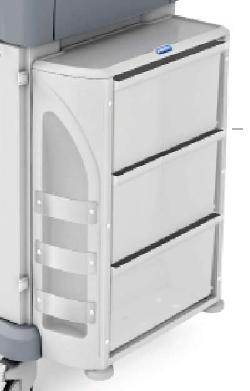 Pojemnik boczny trójkomorowy. Akcesoria pasują do wózków: 326140, 326160, 326040, 326060, 326080 (można odnaleźć je na portalu w dziale Wózki reanimacyjne oraz Wózki organizacyjne, zabiegowe i dokumentacyjne (szafki)).