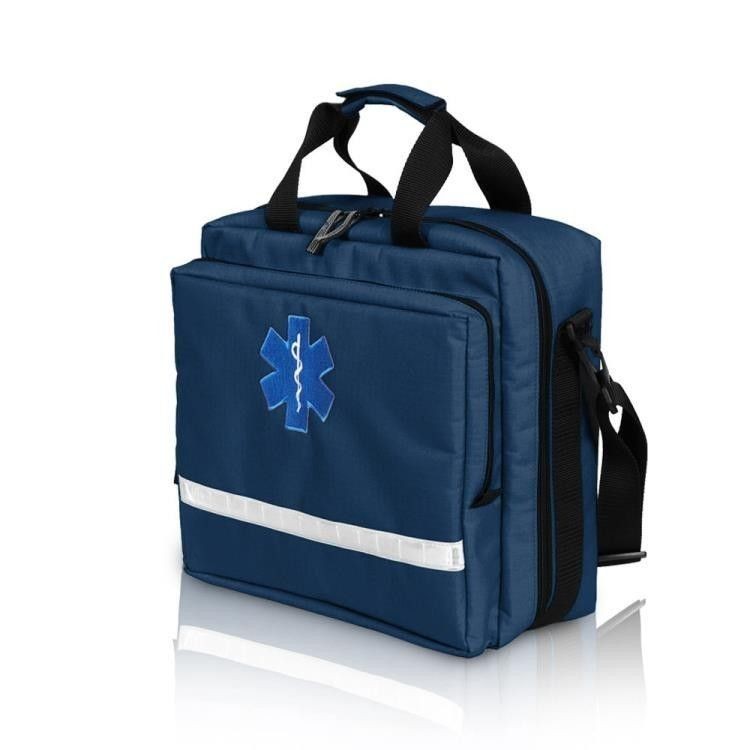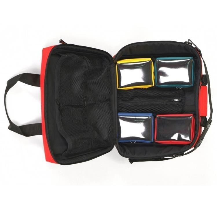 Wygodna i pojemna torba pielęgniarska. Jej zalety to: wygodny, szeroki i szybki dostęp do komory głównej, gdzie znajduje się duża kieszeń zapinana na rzep, liczne kieszonki z siatki zamykane na suwak. Zastosowanie siatki umożliwia łatwy przegląd zawartości torby. 4 kodowane kolorami saszetki mocowane na rzep z przezroczystym wierzchem i opiankowanym spodem. Środek torby wykończony materiałem wodoodpornym WDP, zmywalnym.
