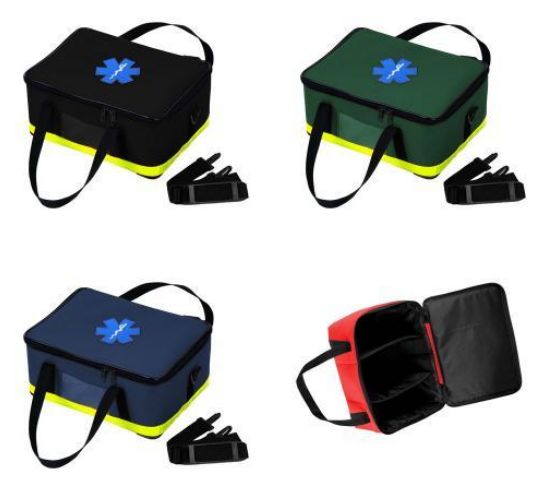 Wykonana zgodnie z zaleceniami koordynatora PSP ds. ratownictwa medycznego. Torba posiada trzy wyodrębnione przegrody na drobny sprzęt i materiały medyczne. Posiada miejsce na podstawowy zestaw opatrunków, maseczkę do sztucznego oddychania, szyny do unieruchomienia złamań oraz drobne akcesoria.