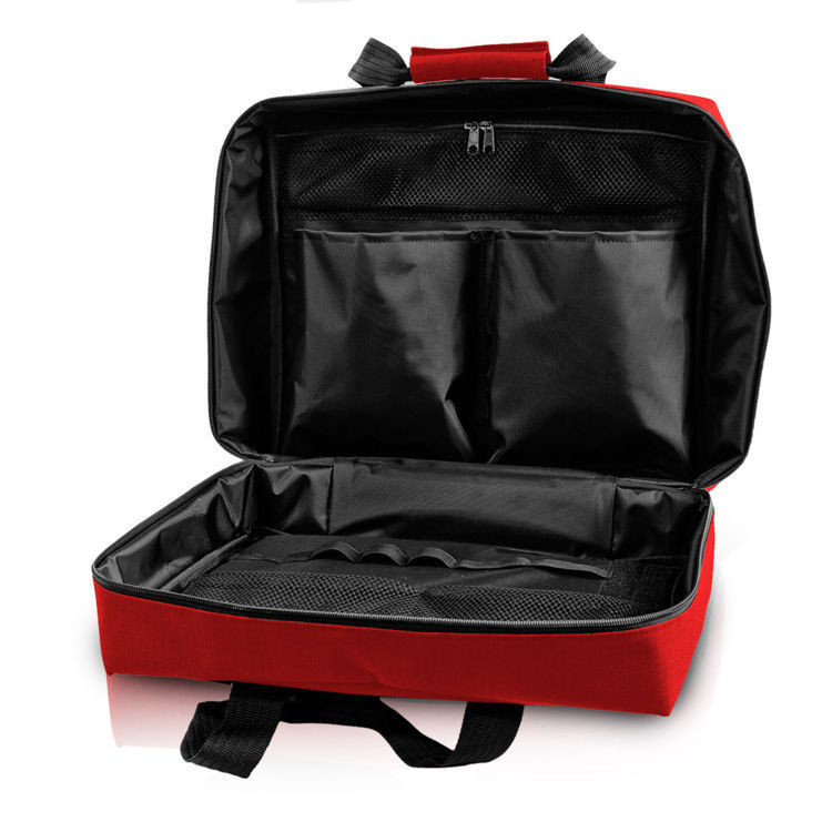 Wnętrze torby wykonano z łatwo zmywalnego NYLONU 210D. Torba zamykana jest na podwójny zamek błyskawiczny, cała opiankowana. W środku dwie otwarte kieszenie, cztery zamykane na zamek błyskawiczny oraz osiem uchwytów z taśmy gumowej. Dodatkowo rzep do mocowania np. ampularium. Na zewnątrz duża kieszeń na dokumenty zamykana na suwak i dwie kieszenie z klapką zapinane na rzep. Dno torby zabezpieczone 4 gumowymi stopkami. Uszy spinane rączką. Pas nośny regulowany, odpinany z naramiennikiem.