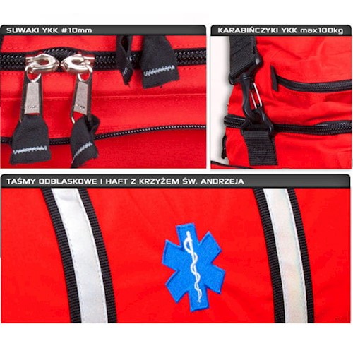 Wymiary: Wysokość: 35 cm, szerokość: 52 cm, długość: 21 cm, pojemność 38l, waga 2 kg.