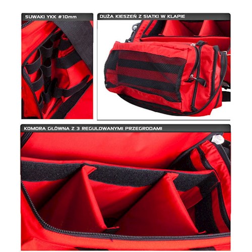 Do produkcji tej torby zostały wykorzystane wyłącznie najlepsze tkaniny i materiały. Podstawowym materiałem jest oryginalna CORDURA firmy DuPont o bardzo dużej odporności na przetarcia i na działanie warunków atmosferycznych. Niezwykle wytrzymały na uszkodzenia mechaniczne, a chroniony patentem splot uniemożliwia powiększanie się ewentualnego rozdarcia. Dzięki swej wewnętrznej strukturze jest to materiał bardzo lekki. Zewnętrzna strona tkaniny powleczona jest warstwą teflonu.