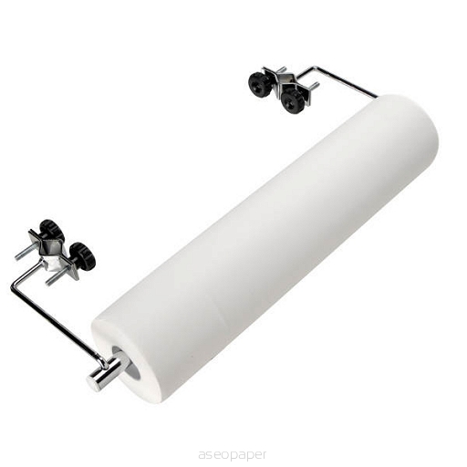 Stelaż, podajnik, uchwyt do rolek medycznych, stalowy, dokręcany do kozetek.