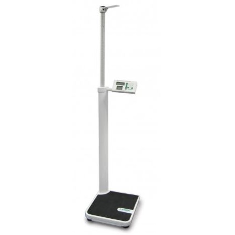 Środek wzrostomierza jest starannie zintegrowany z kolumną i łatwo wysuwany, aby zmierzyć wysokość pacjenta. Większa niż standardowa platforma ułatwia pacjentom stanąć na skali.
