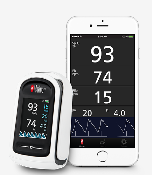 Masimo MightySat to malutki napalcowy pulsoksymetr. Czujnik saturacji na palec wyposażony jest w wysokiej rozdzielczości, kolorowy wyświetlacz, na którym prezentowane są pomiary w czasie rzeczywistym. Co więcej, jest on obrotowy i regulowany, a dodatkowo można go obsługiwać z wykorzystaniem touchpada. Czujnik do pomiaru saturacji Masimo MightySat ma stabilną konstrukcję i łatwo dopasowuje się go do kształtu palca. Dzięki temu jest chętnie używany w szpitalach, klinikach, a nawet w domach. Oprócz tego urządzenie to stosowane jest podczas transportu medycznego oraz przez ratowników medycznych. Czujnik saturacji na palec oprócz mierzenia poziomu SpO2 pozwala również na wykonywanie innych pomiarów, w tym m.in. ilości oddechów, zmienności fali pletyzmograficznej, perfuzji czy tętna.