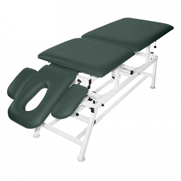 Stół posiada szerokie 5-segmentowe leże, pokryte najwyższej jakości tapicerką, dzięki temu jest wyjątkowo wytrzymały i odporny na ścieranie. Występuje w wielu opcjach kolorystycznych, co pozwala na dopasowanie go do każdego gabinetu.
