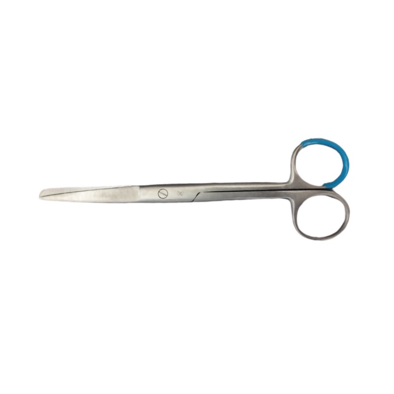 Nożyczki zagięte typu Mayoto jałowe narzędzia jednorazowego użytku, przeznaczone do cięcia grubych tkanek, znajdujących się na przykład w macicy, piersiach czy mięśniach. Produkt znakowany kolorem.