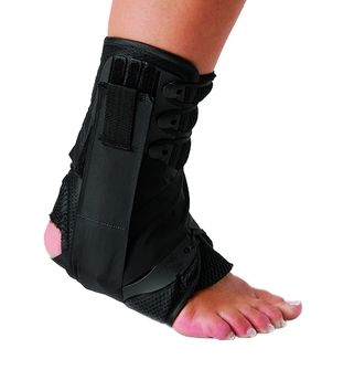 Orteza wykonana z trójwarstwowej oddychającej tkaniny, wzmocniona wyprofilowanymi fiszbinami zapewniającymi unieruchomienie stawu skokowego, sznurowanie na grzbietowej stronie stopy dające możliwość lepszego dopasowania do kształtu kończyny, dwie dodatkowe taśmy stabilizujące dla bocznego i przyśrodkowego wzmocnienia więzadeł stawów skokowych, odkryta pięta, przodostopie wolne, uniwersalne zaopatrzenie prawego i lewego stawu skokowego, kolor czarny.
