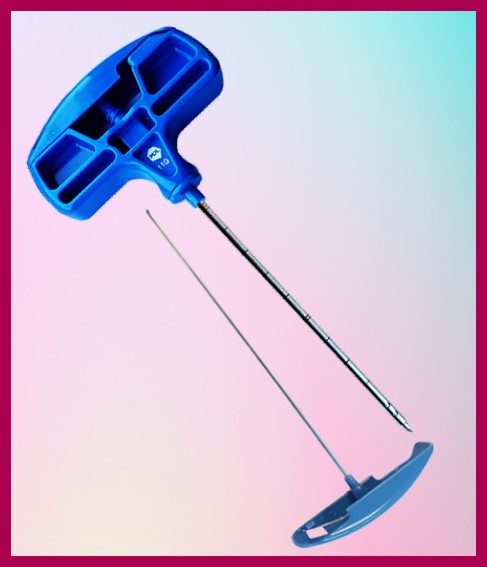 ergonomiczny uchwyt typu „młotek” gwarantuje wygodę w manewrowaniu igłą