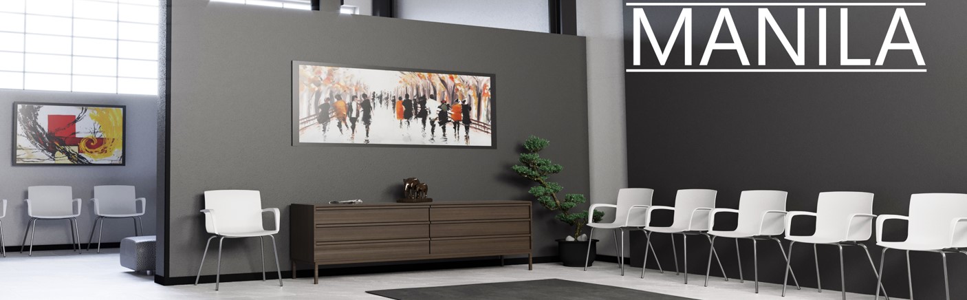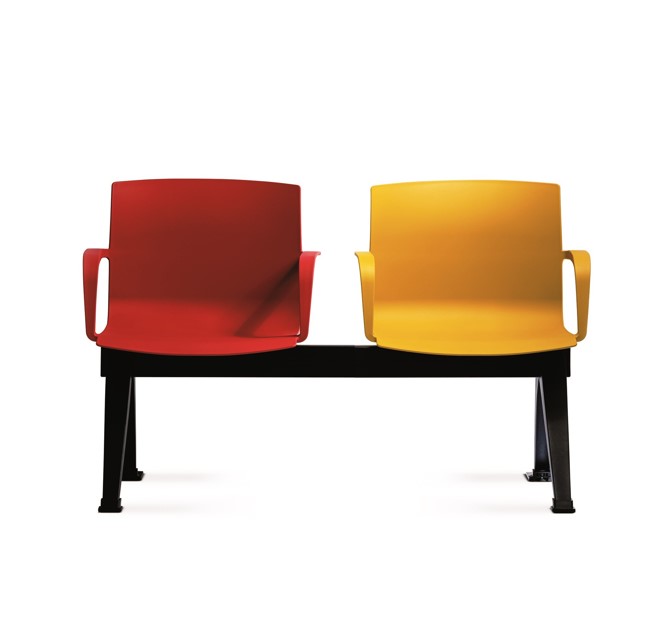 Dwa podłokietniki które łączą się ze sobą z tyłu oparcia - to charakteryzuje siedzisko w krzesłach i ławkach Manila. Spotykające się w uścisku podłokietniki z cienkim kubełkiem z tworzywa sztucznego, ukształtowane tak aby delikatnie wspierać plecy. Dostępne w 6 modnych i praktycznych kolorach w połączeniu z czarnymi stelażami (lub w innym kolorze). Uzupełnieniem ławek do poczekalni MANILA jest cała rodzina krzeseł na różnych wersjach podstawy.