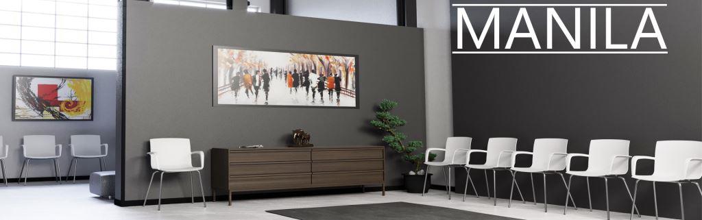 Dwa podłokietniki które łączą się ze sobą z tyłu oparcia - to charakteryzuje siedzisko w krzesłach i ławkach Manila. Spotykające się w uścisku podłokietniki z cienkim kubełkiem z tworzywa sztucznego, ukształtowane tak aby delikatnie wspierać plecy. Dostępne w 6 modnych i praktycznych kolorach w połączeniu z czarnymi stelażami (lub w innym kolorze). Uzupełnieniem ławek do poczekalni MANILA jest cała rodzina krzeseł na różnych wersjach podstawy.