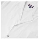 Fartuch medyczny w klasycznym fasonie z długim rękawem, kołnierzykiem oraz zapinaniem na zatrzaski. Posiada dwie kieszenie na dole z czego jedna z nich posiada praktyczną kieszonkę na smartfon oraz małą dodatkową kieszonkę na wizytówki. Dzięki tkaninie uzyskujemy doskonały komfort pracy i pełną swobodę ruchów. Tkanina przeznaczona jest również dla alergików.