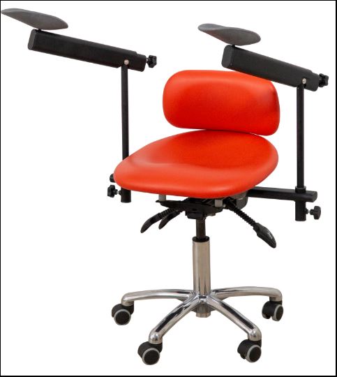 Krzesło wyposażone w podłokietniki teleskopowe z regulowaną siłą podparcia – idealne rozwiązanie dla prac wymagających najwyższej precyzji.